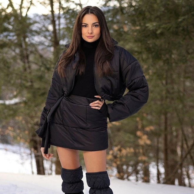 Paige DeSorbo is the self-proclaimed “queen of the bed,” so it only makes sense that for this year’s big football game, she’s keeping her outfits cute and cozy.
